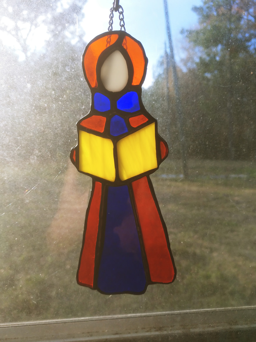 These one-of-a-kind 7 3/16" tall stained glass Christmas carolers were personally hand cut and assembled by me in Notasulga, AL. These pieces will contribute to the decor of any window or holiday decoration showing school spirit and holiday greetings.
